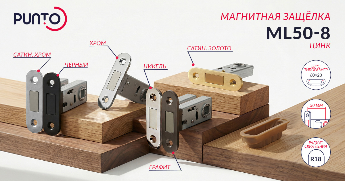 Новая магнитная защелка ML50-8 от PUNTO — совершенство в каждой детали! Практичный выбор для тех, кто ценит качество без переплат, кому не нужно запирание двери на поворотник, но важна современность, бесшумность и надёжность.